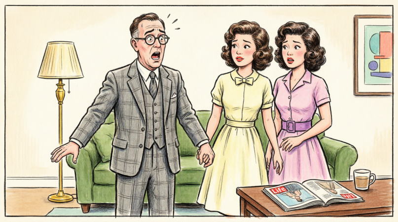 From the hallway, a woman’s voice cuts in sharp as broken glass.