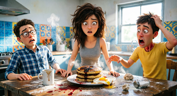 I took the flour, eggs, and milk. I mixed the batter in the big blue bowl my mother had given me when we moved. I added vanilla and a pinch of cinnamon, just the way Daniel liked it. I heated the pan, listened to the sizzle of the batter as it fell, and watched bubbles form on the surface of each pancake.
