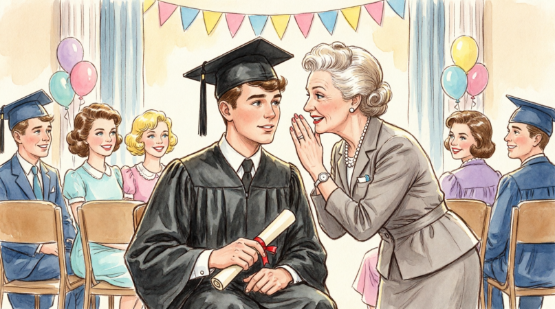 The ceremony ended with the traditional tossing of caps, though I held on to mine, thinking about the deposit I would get back if I returned it undamaged. My parents had already explained multiple times that graduation was expensive enough without throwing away a $40 rental.