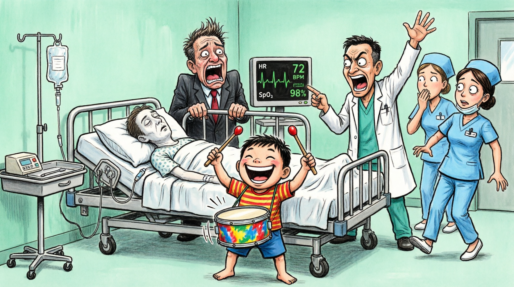 An uneven, childlike rhythm. Not a melody—just sound discovering itself. The soft taps blended with the steady beep of the monitor. Daniel smiled and kept playing, slow and curious.